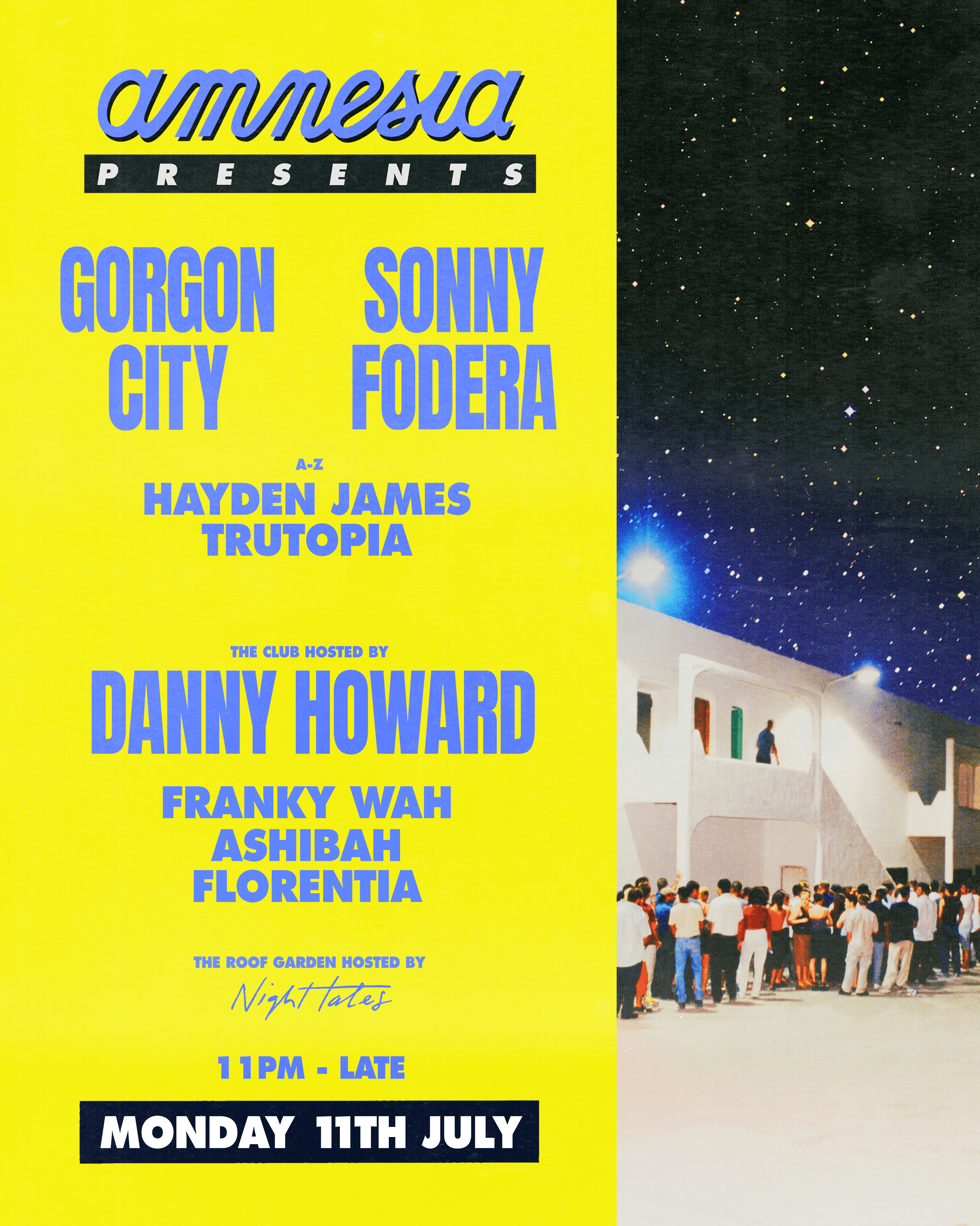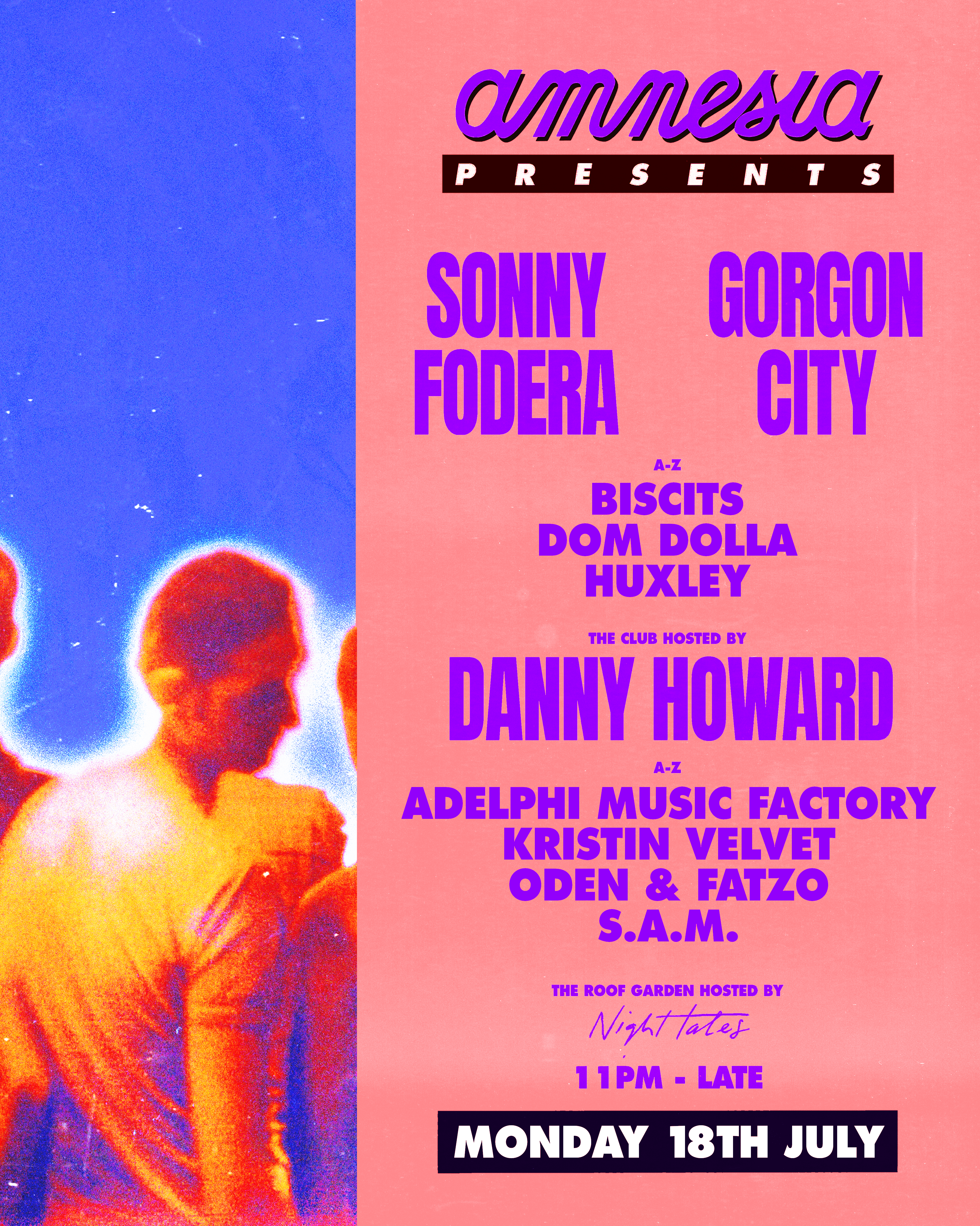 Creative Direction & Design for Amnesia Presents 2022, the monday-night residency at Amnesia Ibiza with Gorgon City, Sonny Fodera & Danny Howard.